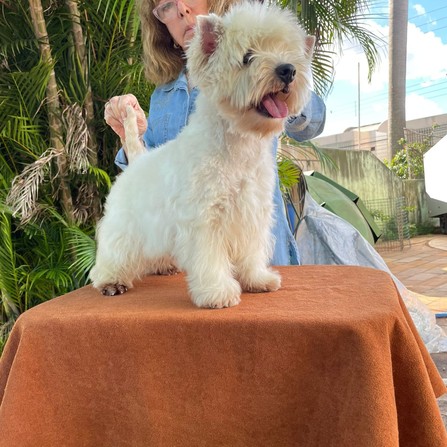 INFORMAÇÕES: Westie com muita pelagem. Muito calma e amorosa. Adora um carinho.
